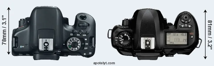 | 4. | Canon 77D | 131 mm | 100 mm | 76 mm | 540 g | 600 | n | Feb 2017 | US$ 899 | ebay.com | |