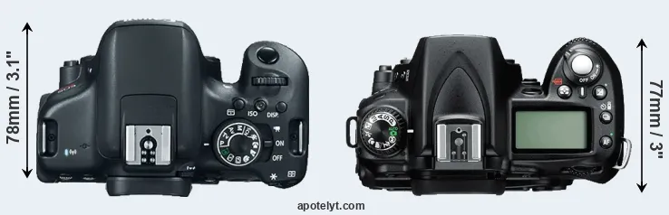 | 4. | Canon 77D | 131 mm | 100 mm | 76 mm | 540 g | 600 | n | Feb 2017 | EUR 899 | ebay.com | |