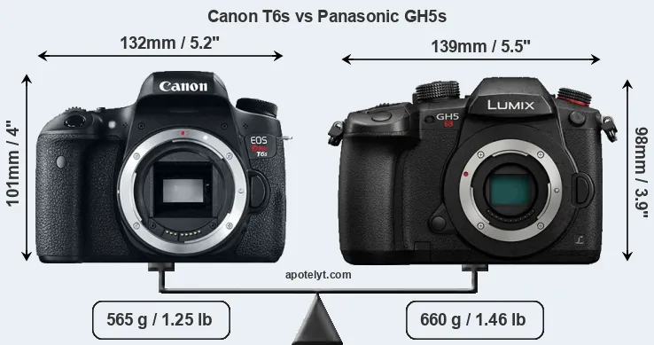 | Body Specs | Canon T6s | Panasonic GH5s |