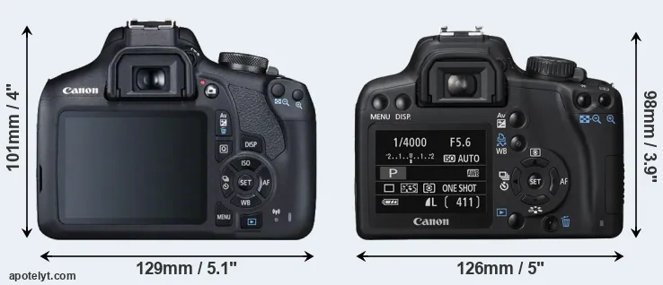 | 5. | Canon SL2 | 122 mm | 93 mm | 70 mm | 453 g | 650 | n | Jun 2017 | US$ 549 | ebay.com | |