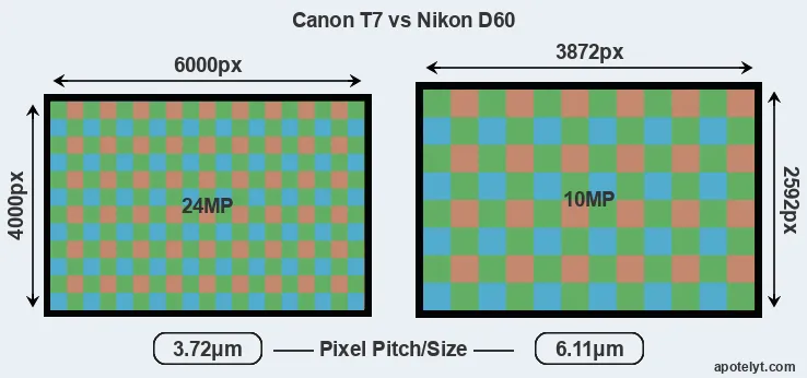 | Sensor Specs | Canon T7 | Nikon D60 |