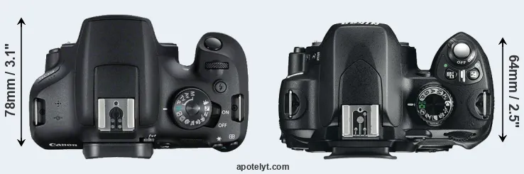 | 12. | Canon T100 | 129 mm | 102 mm | 77 mm | 436 g | 500 | n | Feb 2018 | US$ 399 | amazon.com | |