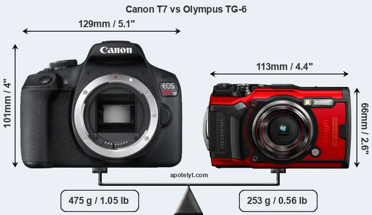 | Body Specs | Canon T7 | Olympus TG-6 |