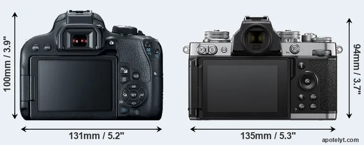 Going beyond this snapshot of core features and characteristics, what are the differences between the Canon EOS Rebel T7i and the Nikon Z fc? Which one should you buy? Read on to find out how these two cameras compare with respect to their body size, their imaging sensors, their shooting features, their input-output connections, and their reception by expert reviewers.