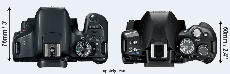 | 3. | Canon 77D | 131 mm | 100 mm | 76 mm | 540 g | 600 | n | Feb 2017 | US$ 899 | ebay.com | |