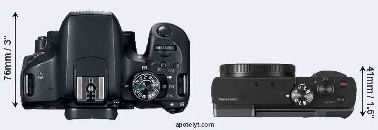 The Canon EOS Rebel T7i (called Canon 800D in some regions) and the Panasonic Lumix DC-ZS70 (labelled Panasonic TZ90 in some countries) are two digital cameras that were officially introduced, respectively, in February 2017 and April 2017. The T7i is a DSLR, while the ZS70 is a fixed lens compact. The cameras are based on an APS-C (T7i) and a 1/2.3-inch (ZS70) sensor. The Canon has a resolution of 24 megapixels, whereas the Panasonic provides 20.2 MP.
