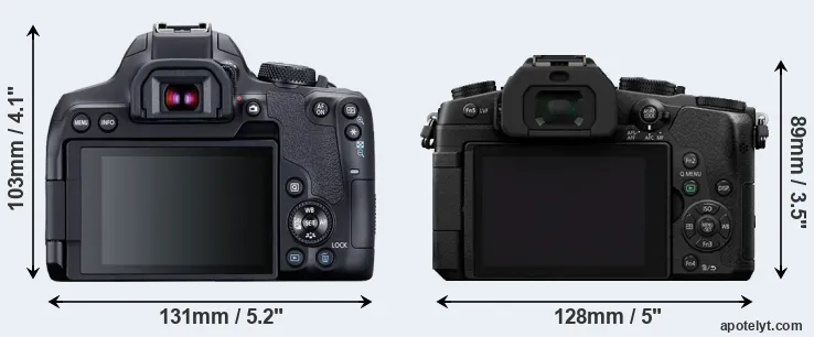 The Canon EOS Rebel T8i (called Canon 850D in some regions) and the Panasonic Lumix DMC-G85 (labelled Panasonic G80 in some countries) are two digital cameras that were revealed to the public, respectively, in February 2020 and September 2016. The T8i is a DSLR, while the G85 is a mirrorless interchangeable lens camera. The cameras are based on an APS-C (T8i) and a Four Thirds (G85) sensor. The Canon has a resolution of 24 megapixels, whereas the Panasonic provides 15.8 MP.