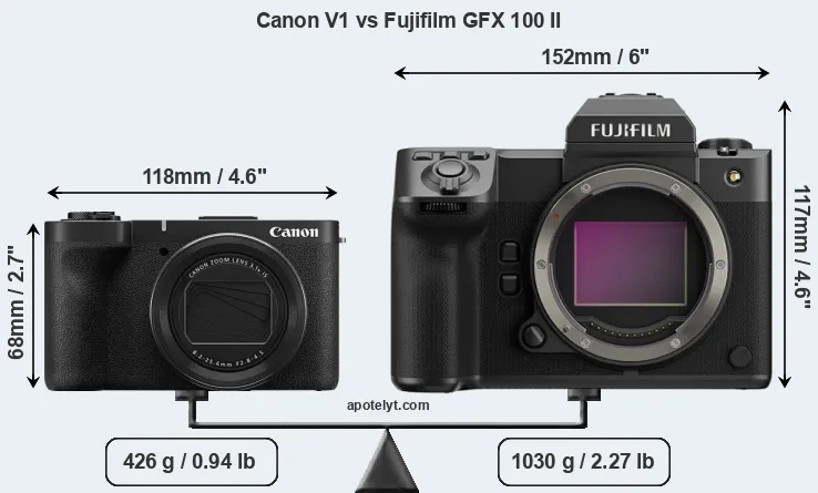 | Body Specs | Canon V1 | Fujifilm GFX 100 II |