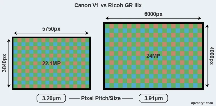 | Sensor Specs | Canon V1 | Ricoh GR IIIx |