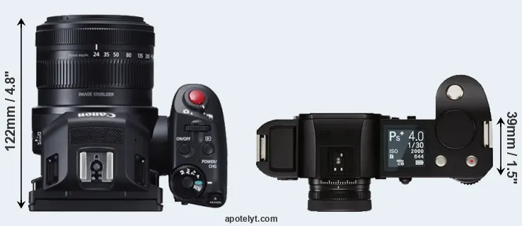 The Canon XC10 and the Leica SL (Typ 601) are two enthusiast cameras that were revealed to the public, respectively, in April 2015 and October 2015. The XC10 is a fixed lens compact, while the Leica SL is a mirrorless interchangeable lens camera. The cameras are based on an one-inch (XC10) and a full frame (Leica SL) sensor. The Canon has a resolution of 12 megapixels, whereas the Leica provides 24 MP.