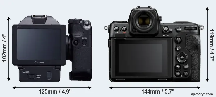 If the front view area (width x height) of the cameras is taken as an aggregate measure of their size, the Nikon Z8 is notably larger (34 percent) than the Canon XC10. It is noteworthy in this context that the Z8 is splash and dust-proof, while the XC10 does not feature any corresponding weather-sealing.