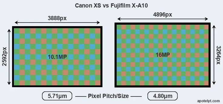 | Sensor Specs | Canon XS | Fujifilm X-A10 |