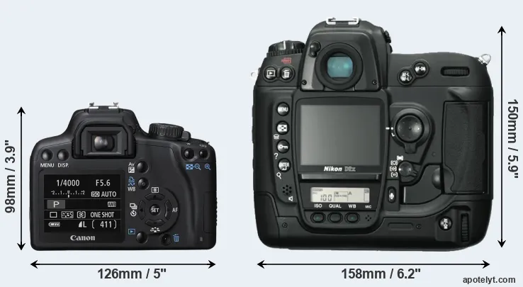 | Body Specs | Canon XS | Nikon D2X |