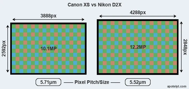 | Sensor Specs | Canon XS | Nikon D2X |