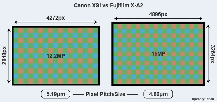 | Sensor Specs | Canon XSi | Fujifilm X-A2 |