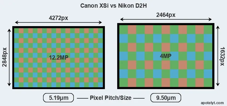 | Sensor Specs | Canon XSi | Nikon D2H |