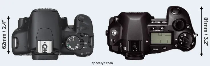 | 2. | Olympus E-1 | 141 mm | 104 mm | 81 mm | 738 g | 750 | Y | Jun 2003 | US$ 1 699 | ebay.com | |