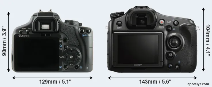 | 16. | Sony A77 | 143 mm | 104 mm | 81 mm | 732 g | 470 | Y | Aug 2011 | US$ 1 399 | ebay.com | |