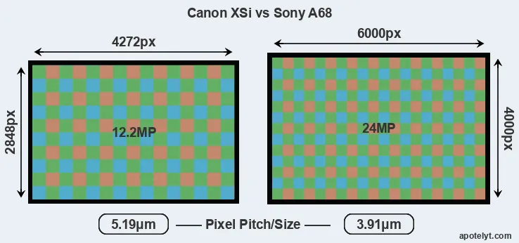 | Sensor Specs | Canon XSi | Sony A68 |