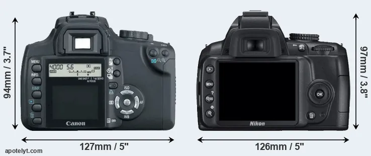 | Body Specs | Canon XT | Nikon D3000 |