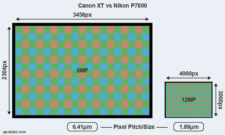 | Sensor Specs | Canon XT | Nikon P7800 |