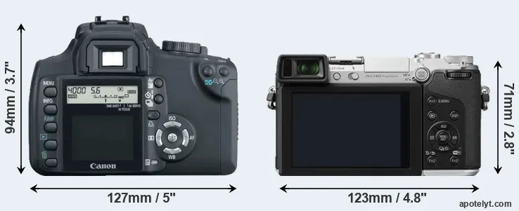 | Body Specs | Canon XT | Panasonic GX7 |