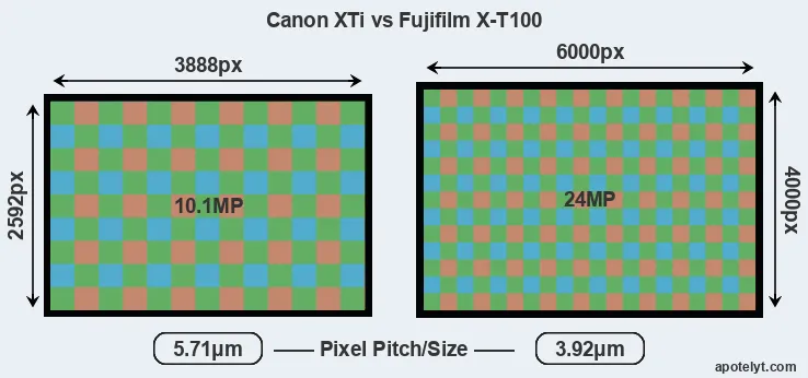 | Sensor Specs | Canon XTi | Fujifilm X-T100 |