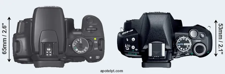 | 1. | Canon XTi | 127 mm | 84 mm | 65 mm | 556 g | 370 | n | Aug 2006 | US$ 799 | ebay.com | |