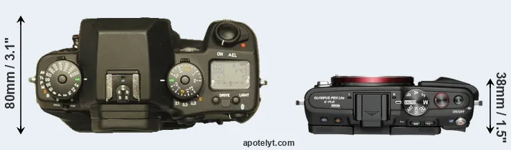 | 15. | Olympus E-PL5 | 111 mm | 64 mm | 38 mm | 325 g | 360 | n | Sep 2012 | US$ 599 | ebay.com | |