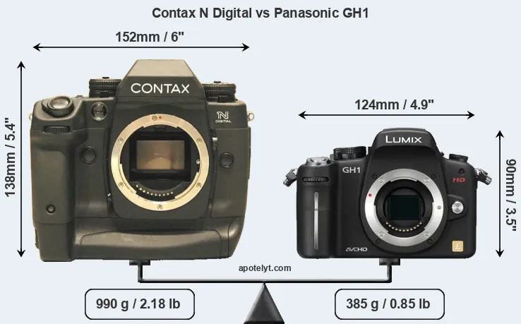 The Contax N Digital and the Panasonic Lumix DMC-GH1 are two digital cameras that were announced, respectively, in February 2002 and March 2009. The N Digital is a DSLR, while the GH1 is a mirrorless interchangeable lens camera. The cameras are based on a full frame (N Digital) and a Four Thirds (GH1) sensor. The Contax has a resolution of 6.1 megapixels, whereas the Panasonic provides 12 MP.