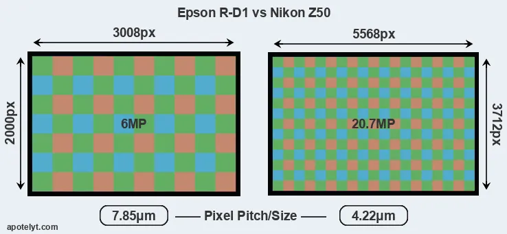 | Sensor Specs | Epson R-D1 | Nikon Z50 |