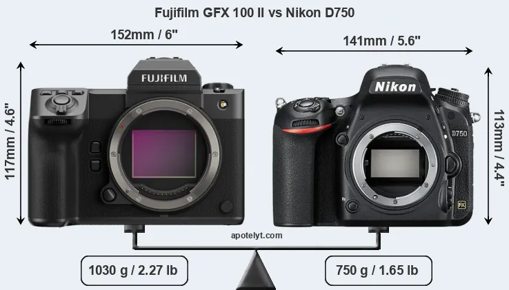 | Body Specs | Fujifilm GFX 100 II | Nikon D750 |