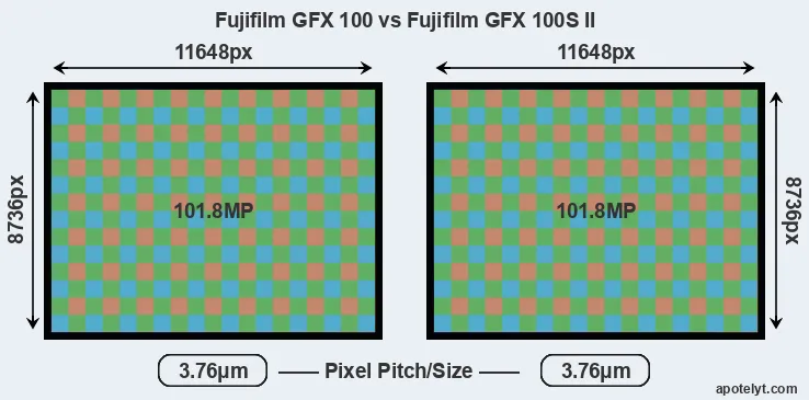 | Sensor Specs | Fujifilm GFX 100 | Fujifilm GFX 100S II |