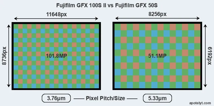 Fujifilm GFX 100S II and Fujifilm GFX 50S sensor measures
