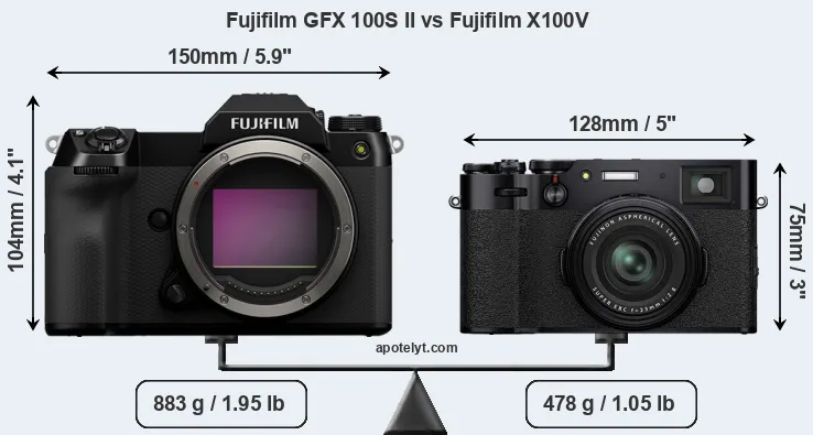 | Body Specs | Fujifilm GFX 100S II | Fujifilm X100V |