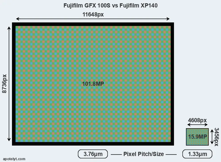 | Sensor Specs | Fujifilm GFX 100S | Fujifilm XP140 |