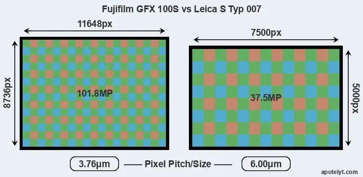 | Sensor Specs | Fujifilm GFX 100S | Leica S Typ 007 |