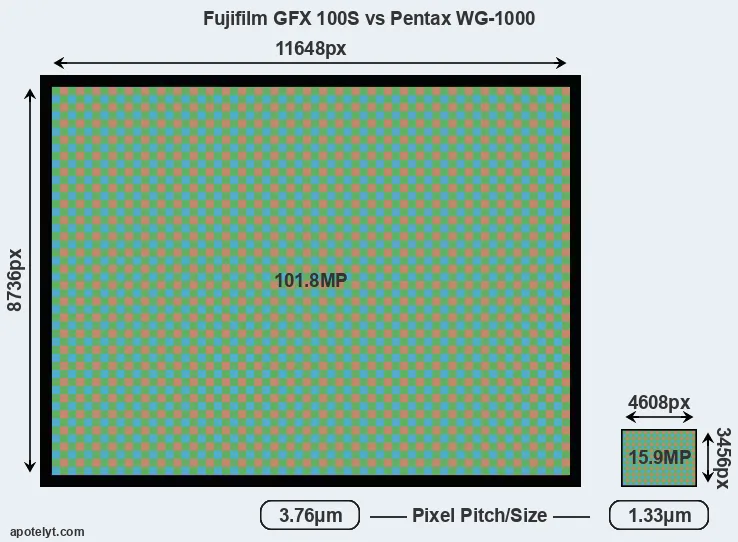| Sensor Specs | Fujifilm GFX 100S | Pentax WG-1000 |