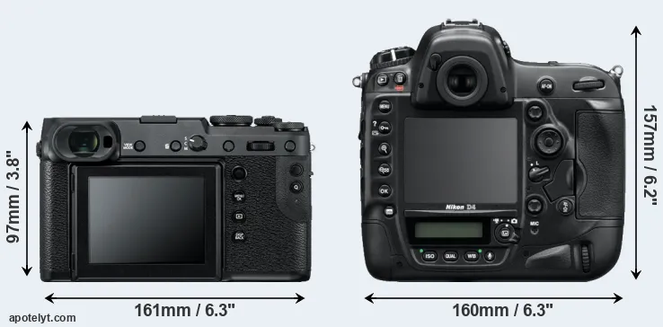 | Body Specs | Fujifilm GFX 50R | Nikon D4 |