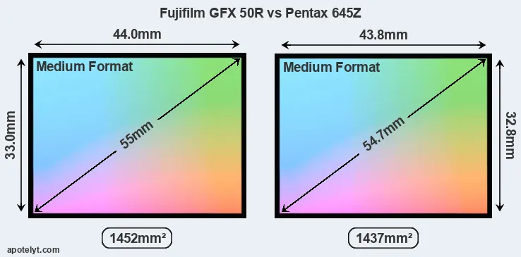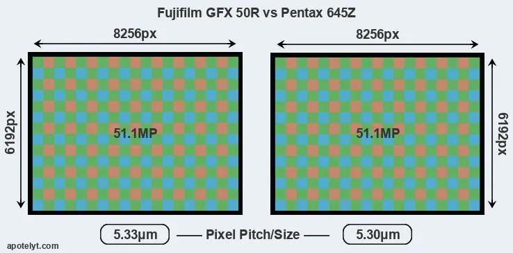 | Sensor Specs | Fujifilm GFX 50R | Pentax 645Z |