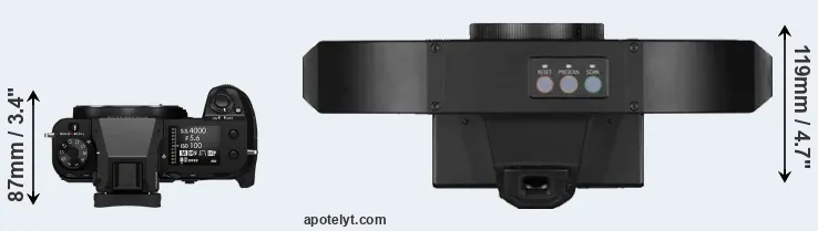 | 8. | Fujifilm GFX 100S | 150 mm | 104 mm | 87 mm | 900 g | 460 | Y | Jan 2021 | US$ 5 999 | amazon.com | |