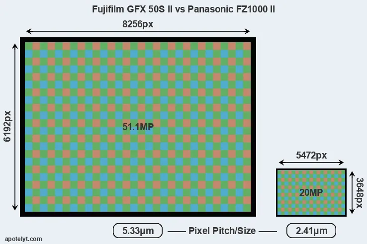 | Sensor Specs | Fujifilm GFX 50S II | Panasonic FZ1000 II |