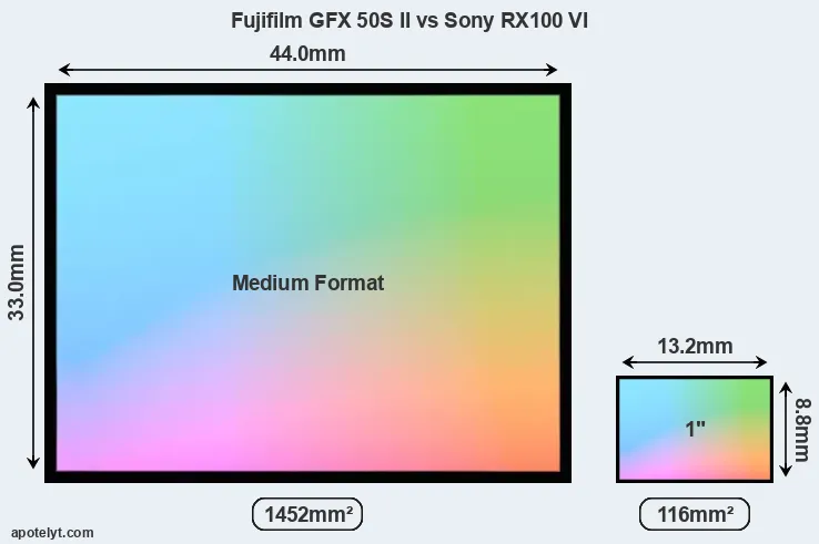 | Sensor Specs | Fujifilm GFX 50S II | Sony RX100 VI |