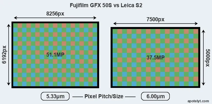 | Sensor Specs | Fujifilm GFX 50S | Leica S2 |