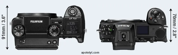 Size Fujifilm GFX 50S vs Nikon Z7 II