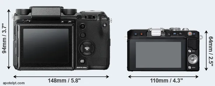 | Body Specs | Fujifilm GFX 50S | Olympus E-PL3 |