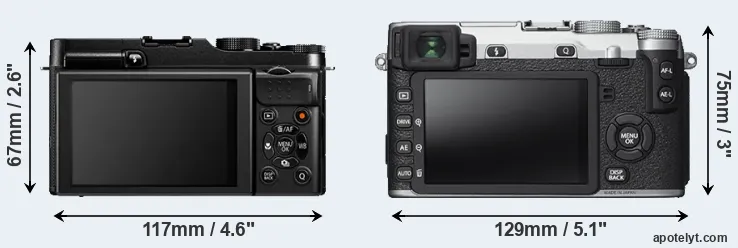 The above size and weight comparisons are to some extent incomplete since they do not consider the interchangeable lenses that both of these cameras require. In this particular case, both cameras feature the same lens mount, so that they can use the same lenses. You can compare the optics available in the Fujinon X Lens Catalog. Mirrorless cameras, such as the two under consideration, have the additional advantage of having a short flange to focal plane distance, which makes it possible to mount many lenses from other systems onto the camera via adapters.