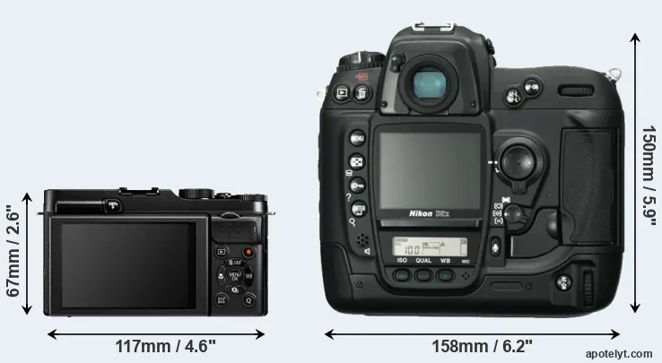 | 2. | Nikon D2X | 158 mm | 150 mm | 86 mm | 1252 g | 3800 | Y | Sep 2004 | US$ 4 999 | ebay.com | |