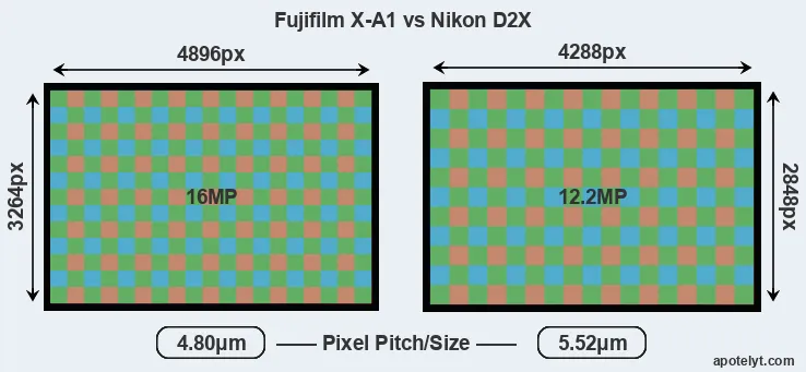 | Sensor Specs | Fujifilm X-A1 | Nikon D2X |