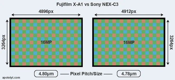 | Sensor Specs | Fujifilm X-A1 | Sony NEX-C3 |